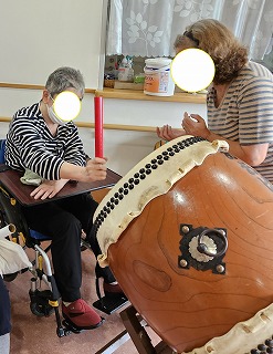 太鼓クラブを開催して皆様とても喜んでいました。見学で参加した方も叩いていました。