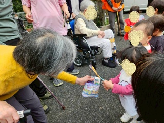 年に1回の ちびっ子との交流 皆様のやさしい顔に 今年のオバケたちは
