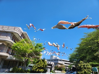 近隣の保育園児が こいのぼりを 見に来ることもあり